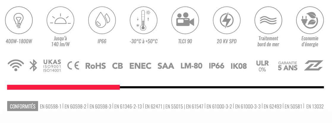 Le projecteur LED sportif Arenis offre un flux lumineux de 56 000 lm à 270 000 lm, constituant une solution flexible pour l’éclairage des stades de taille moyenne à grande. Son conception modulaire permet l’inclinaison indépendante de chaque module LED, garantissant une performance lumineuse précise. Grâce à des matériaux spéciaux et un traitement de surface de haute qualité, il offre une excellente résistance à la corrosion, ce qui en fait également un choix idéal pour l’éclairage portuaire