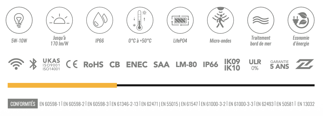 Lumis est un luminaire solaire multifonction IP66, conçu pour offrir performance et flexibilité. Il peut être installé sur des mâts ronds ou carrés grâce à différents supports de fixation, le rendant idéal pour les parcs, jardins, parkings et espaces publics. Son indicateur de charge intégré permet de visualiser en un coup d’œil le niveau de la batterie.