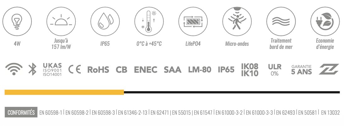 La borne solaire Solune est disponible en deux hauteurs : 0,6 m et 0,8 m, et est fournie avec un pied de fixation en forme de U pour une installation stable et élégante. Conçue en alliage d’aluminium robuste et en verre trempé, elle allie durabilité et esthétique moderne. Équipée d’un capteur PIR (détection de mouvement), elle propose trois modes de fonctionnement afin d’adapter l’éclairage à vos besoins. Le changement de mode s’effectue facilement grâce à un bouton discret intégré ou à la télécommande, pour une utilisation simple, rapide et pratique.